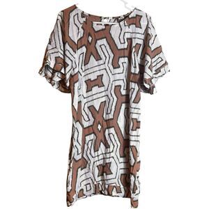 Bel Kazan Graphic Tan and White Short Sleeve Dress Size Medium 📦