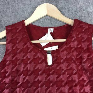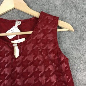 Belah Codey Tank Top S Red Houndstooth Textured Mixed Fabric Keyhole Front Round