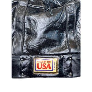 Belding Sports Vintage 1970's Custom Grain Black Leather Golf Gym Tote Bag