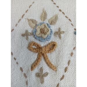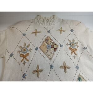 Beldoch Popper Sweater Mock Women's Medium VTG Embroidered Knit Floral Cream