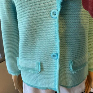 Belford Pima Cotton Textured Fringe 2 Button Blazer Jacket Women M Stretch Cozy