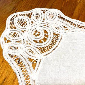 Belgian Bruges Lace + Linen Serving Wrap, NEW