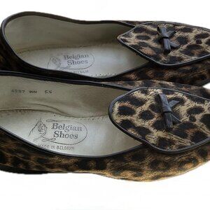 Belgian Shoes Cheetah Print Velvet with Leather Trim Midinette size 5.5 great condition, the only wear is on the toe of one shoe.