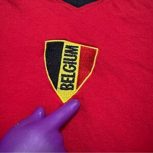 Belgium Soccer Red Shirt Large. Please see photos for measurements and indications of use. Small hole in front, please see photos.