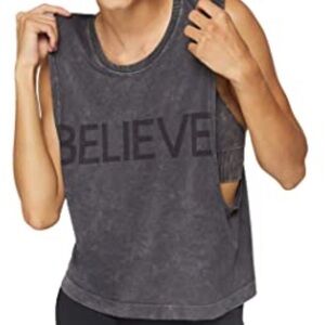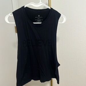 EUC. Channel your inner warrior in your new favorite yoga tank. The Active Flow Top features a tonal black ‘Believe’ front graphic, deep-cut armholes and relaxed fit. Made from an ultra soft, lightweight and quick drying seamless fabric that's washed to perfection so you can stay focused on your practice.
