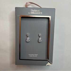 Believe By Brilliance Cubic Zirconia Double Stone Pear Drop Earrings OS NWT