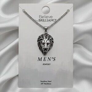 Believe by Brilliance Men’s Silver Lion Head Pendant Necklace 24” NWT
