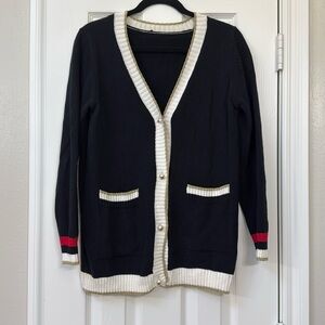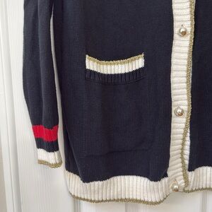 Bought this cardigan at a state sale. The tags were removed, so I did a comparison and it appears to be legit. I added some pictures from a web site so you can see by yourself (including the buttons) Just know the items is in great condition but has no identifying tags. Price reflects these conditions. The first 4 pictures are mine.