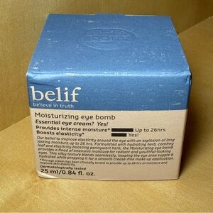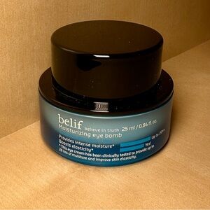 Belif's Moisturizing Eye Bomb Eye Cream is a lightweight cream that floods the eye area with explosive moisture for up to 26 hours, visibly firming and reducing fine lines and wrinkles.