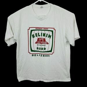 Belikin Mayan Temple Beer T-Shirt Belize Brewery Short Sleeve Mens Size XL White
