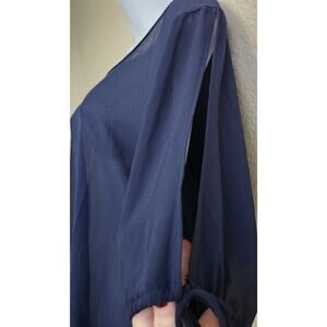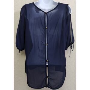 Belinda Blue Sheer Cold Shoulder Back Button Up Top Large Lightweight Flowy Soft