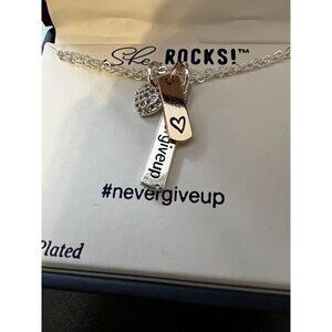 Belk Silverworks Silver Plated Necklace She Rocks! NEVER GIVE UP Pendants -NEW