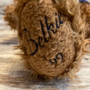 Presenting a delightful Belkie Bear from 1999, this charming brown bear is in great condition and embodies the festive spirit. Dressed as a Christmas soldier, he dons a bright red vest adorned with shiny gold buttons, adding a touch of holiday cheer to his cute and cuddly appearance. The attention to detail in his soldier outfit highlights the craftsmanship and care put into his design. This adorable bear is perfect for collectors or anyone looking to add a nostalgic and festive touch to their holiday decorations. His endearing expression and holiday attire make him a cherished keepsake from the late '90s, ready to bring joy to any home.