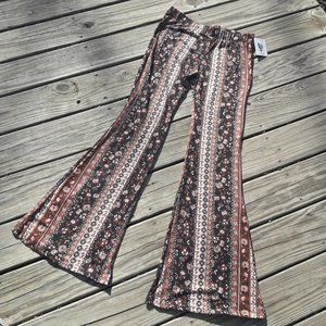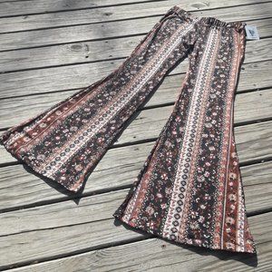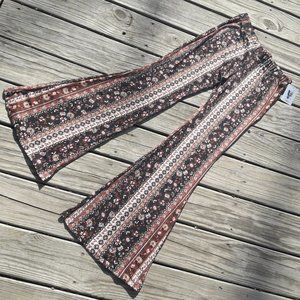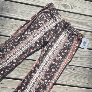 Bell Bottom Leggings Flared Leg Yoga Pants Athleisure Wear NEW with Tags NEW Boho Wide Leg Leggings Boot Cut Yoga Pants Flared Leg Bottom Floral Striped Print Elastic Waist Slightly Bell Bottom Bohemian Athleisure wear Hippie Balletcore Coastal cowgirl daisy flower hippy chick Wonderful neutral tone colors include Black creamy beige copper melon pink brown tan.