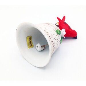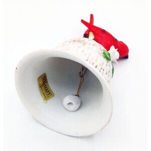This delightful porcelain bell has a vibrant red cardinal perched atop. Its intricate floral accents and textured design evoke a sense of nostalgia. Ideal for collectors or those who appreciate timeless decor pieces, this figurine adds charm to any room, capturing the essence of vintage craftsmanship.