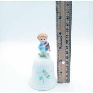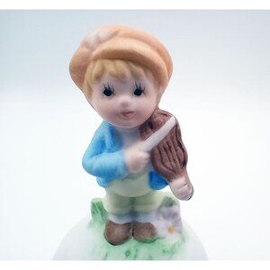 This porcelain bell of a charming boy figurine, skillfully crafted to enhance your collection, plays the violin. The intricate design and delicate floral accents add elegance.