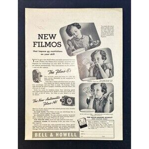Bell & Howell "Filmo Movie Cameras: Sequence Photos Girl Blowing Bubbles" Chicago, ILL. Vintage Print Ad 1938 Popular Photography Magazine December 1938 About 8 x 11 Inches. Carefully shipped.