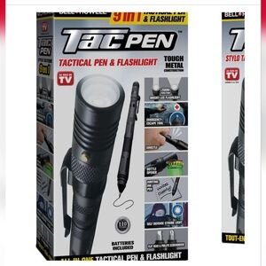 9 in 1 all black slim light weight yet durable multi tool. From window punch with the twist of two fingers to a distress whistle, writing pen,screwdriver (flat head & Phillips) and more!Bell + Howell Technology Leader for over years. Since 1907. Batteries Included. As seen on TV. Tough metal construction. Zoom function. Bright LED flashlight. Flat head & Phillips screwdriver. Writing ink pen. Whistle. Emergency escape tool. Bottle opener. Self defense strobe light. All in one tactical pen and flashlight. "