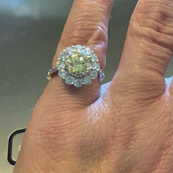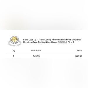 Bella Luce (r) 7.34ctw Canary And White Diamond Simulants Rhodium Over Sterling Silver Ring - BLN678-7 Size: 7