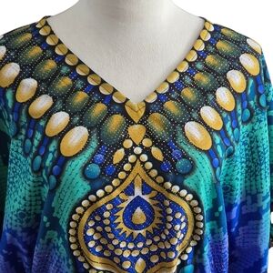 Bell Pepper One Size Maxi Vibrant Multicolor Kaftan Dress Shiny Tiny Gold Studs