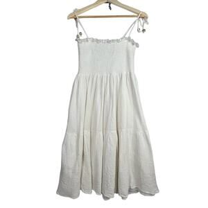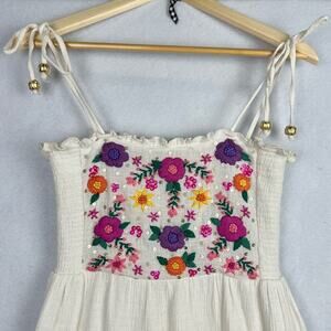 Bell By Alicia Bell Smocked Floral Embroidered Sequin Sleeveless Tassel Ties Gauzy Lined Boho Dress Small