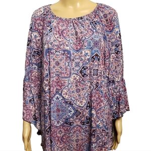 Bell Sleeve Abstract Blouse