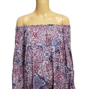 Like new Very stretchy fabric mixture of purple and blues wear on or off shoulders