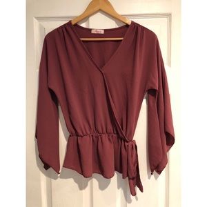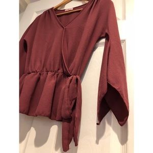 Worn once *Perfect Condition * Bell Sleeves *elastic band on waistline *Color: Pink Rouge