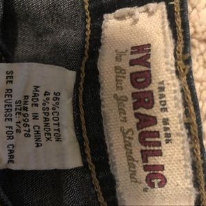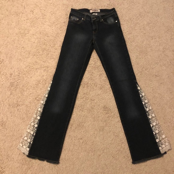 Hydraulic Blue jean bell bottoms with cream side lace details. Gently worn. See pictures for details.