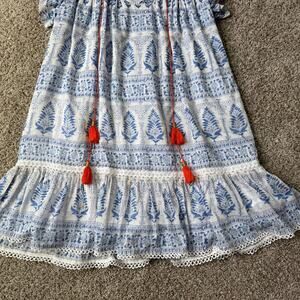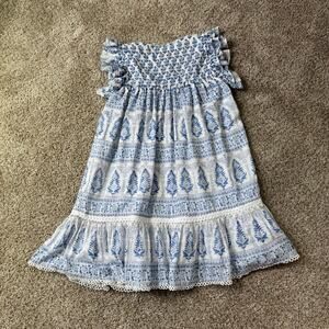 Bell by Alicia Bell Blue White Tunic Mini Dress Silk Cotton Blend Tassels Size Small