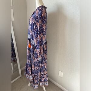 Bell by Alicia Bell Paisley Button Down Maxi Dress with Tassels Size Large Navy