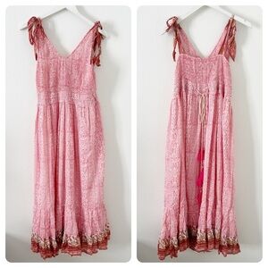 Bell by Alicia Bell Pink Smocked Tie Midi Dress Size Medium M