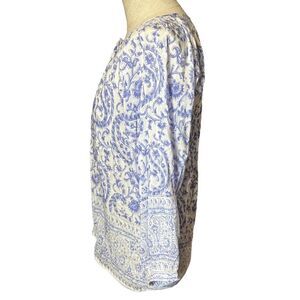 Bell by Alicia Bell Top Small Blue White Tunic Paisley Cotton & Silk Button Up