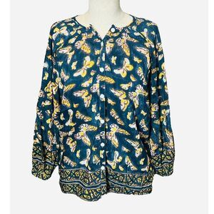 Bell by Alicia Bell Top Small Tunic Butterfly Cotton Silk Button Up