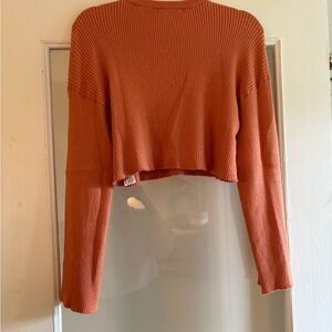 Peachy/coral ribbed cropped sweater with cute flared sleeves.