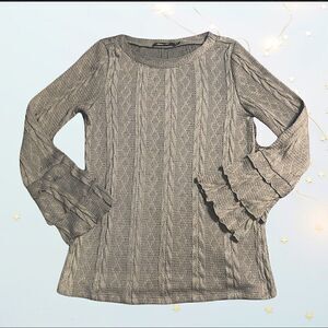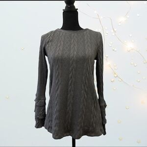 Bell Sleeves Grey Heather Cable Knit Sweater