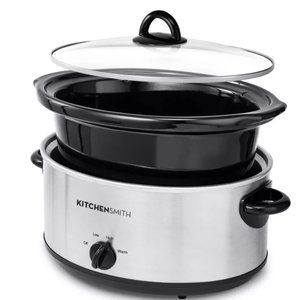The KitchenSmith by Bella 6QT Manual Slow Cooker offers a family-sized capacity that serves up to 7 people. 3 heat settings allowing you to cook at the preferred temperature for your meal. Remove the ceramic pot when meal is done cooking for easy serving. It's cool-touch handles allows you to transport your slow cooker while keeping your food hot. When the days over and it's time to clean up, the ceramic pot can do right in the dishwasher!