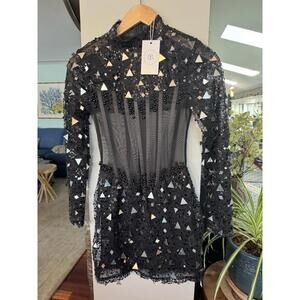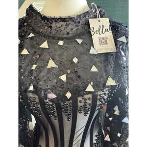 Bella Barnett NWTXS Sm black sheer dress sequin beaded pageant gala embellished