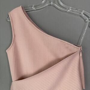 Bella Barnett sz S pink asymmetrical shoulder strap fitted knit mini dress NWOT