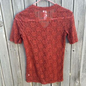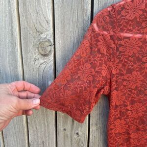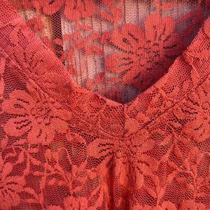 Gorgeous lace coverlet see through short sleeve size medium Width is 16”. Length is 25”. Sm
