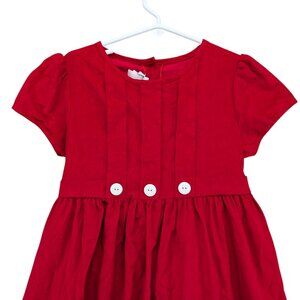 Bella Bliss Corduroy Christmas Dress Girls Red Cap Sleeve Pleated Belted Size 6Y