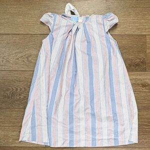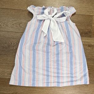 Bella Bliss Girls Striped Mitzi Dress Striped Sz 7 Bow Cotton/Linen Cap Sleeve