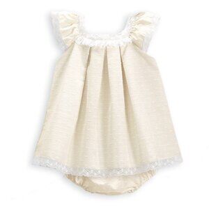 NWT Bella Bliss Great Dress with Swiss dots in “Gold” (looks more cream with slightly gold threaded shimmer). Lace hems & collar. So precious!