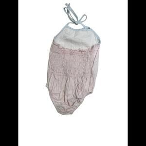 Bella Bliss Pink White Seersucker Swimsuit with Blue Ruffle Sz 3. Condition is Pre-owned. Shipped with USPS Ground Advantage.