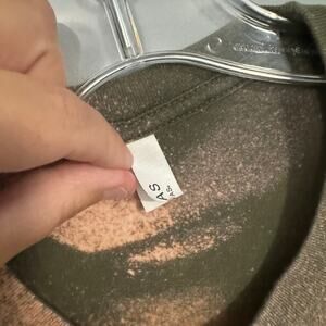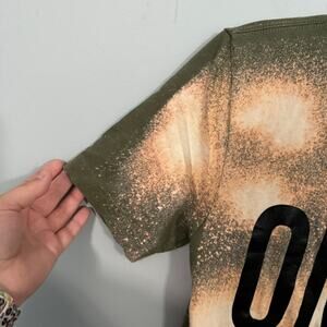 Bella Canvas Bleached Tee Shirt OMG No One Cares in women's Size Small. Short sleeves. Shirt is an olive/military green that's been bleached. Shirt is in good used condition with no flaws or stains other than some minor wash wear. Pit to pit measures approx 16.5 in across & length from top of front shoulder to bottom hem measures approx 26.5 in. Please see close-up pictures for condition details.