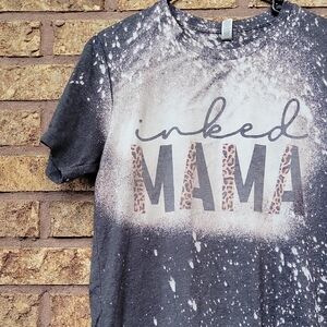 Stylish graphic tee with 'Inked Mama' design. Features a unique splatter pattern.