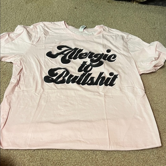 Bella Canvas short sleeve tee in soft pink. Bold black script slogan on front. Casual, eye-catching graphic style. Easy to pair with jeans or leggings.