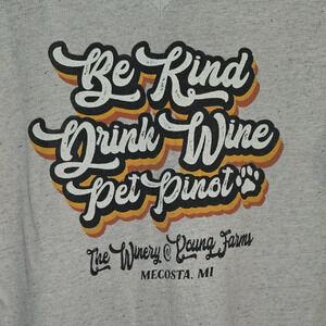 Bella Canvas Tan V-Neck Tee "BE KIND, DRINK WINE, PET PINOT" Young Farms LOT R1