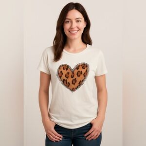 Bella + Canvas White Graphic Tee Leopard Print Heart Sketch Design Size Medium RETAIL $35