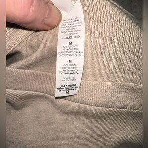 52% cotton 48 % polyester. Pit to pit 18” , length 28”
